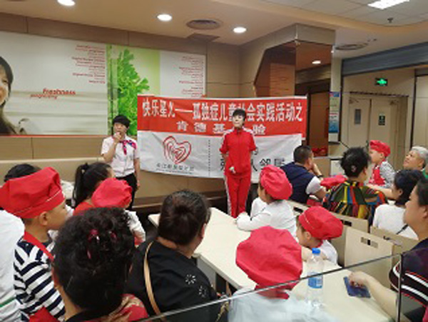 在第二十八个助残日即将来临之际,5月18日,佳木斯市前进区儿童之家在肯德基佳木斯大润发店举行了体验活动。本次活动有30名孤独症患儿,15名志愿者,及11名工作人员共同参与,活动中,孩子们分组参观了操作间,观看了食物的制作过程,并且亲手学习制作了汉堡。品尝了自己的劳动果实。肯德基店面还为孩子们捐赠了30个书包和30套餐具。本次活动让孤独症儿童体验了丰富多彩的生活,感受来自社会的关爱。锻炼了孩子们的动手能力,激发了孩子探索周围环境的欲望,为更好地融入社会,创造了实践的机会!
