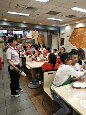栾延滨:(儿童之家老师) 今天我们带领小朋友参观了肯德基活动,在肯德基锻炼了自身社会能力了解社会现实,拉近与社会距离,了解制作汉堡的过程。孩子们非常开心和快乐。非常喜欢这个活动,希望以后还有这样的活动机会。